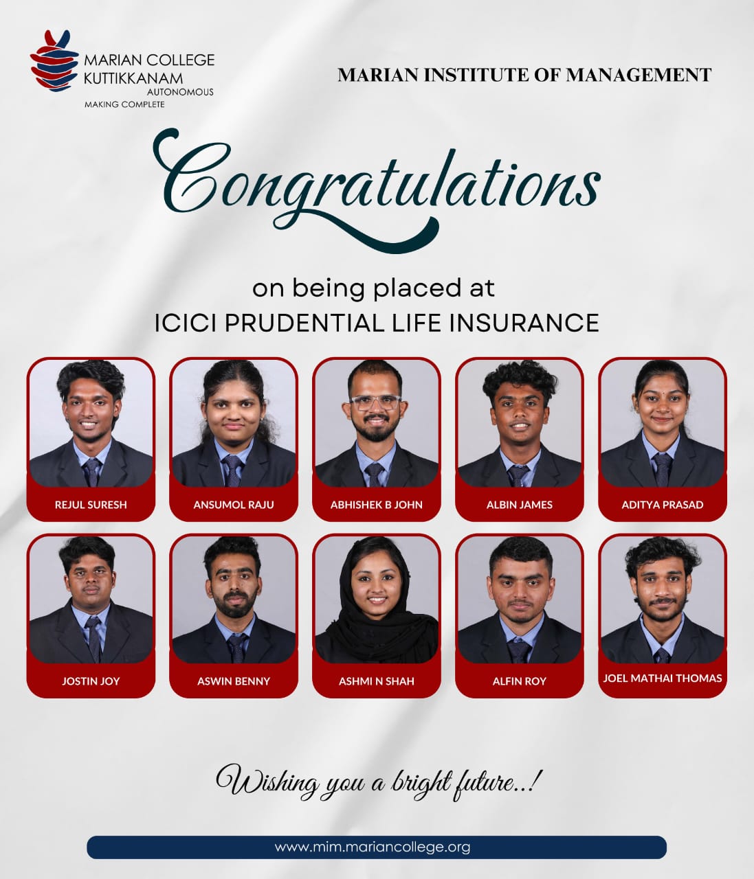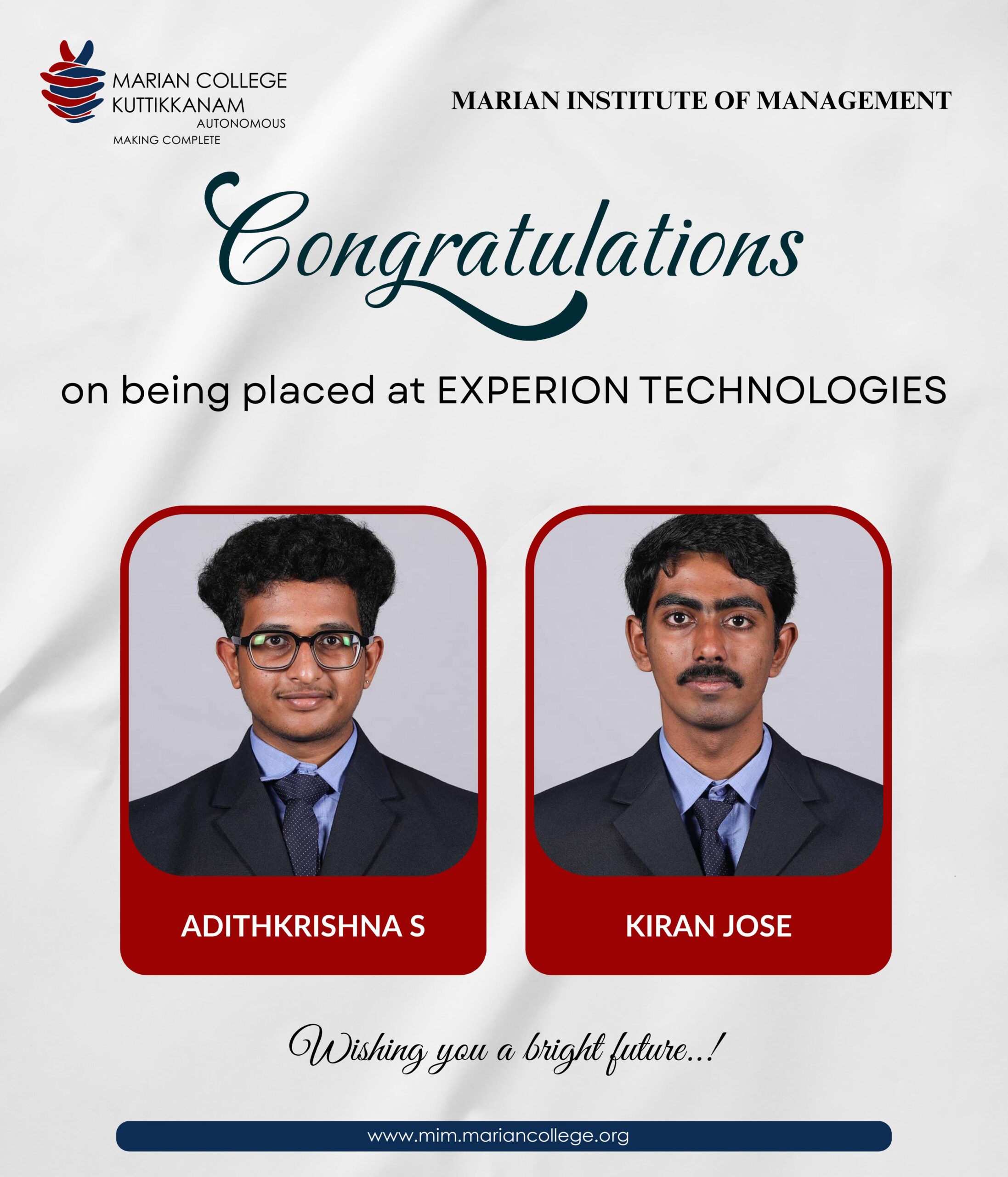 I am extremely fortunate to be a student at Marian, where I develop. They played a significant part in moulding me into the person I am today. They give me a platform not only for real-world learning but also for exposing my talents. I would like to specially thank my BBA department and its faculties for improving me in academics and their cordial attitude helped to develop my interpersonal skills too. I appreciate Marian for offering such a wonderful atmosphere for quality education and enchanted memories.