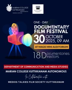 The Department of Communication & Media Studies, in collaboration with Medios Talkies Film Society, Kuttikkanam, hosted a one-day Documentary Film Festival on 30 October 2025, 9:00 AM at the MAGIS Mini Auditorium.