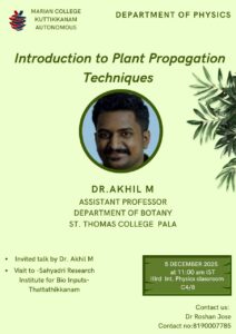 The Department of Physics organised an invited talk on “Introduction to Plant Propagation Techniques” by